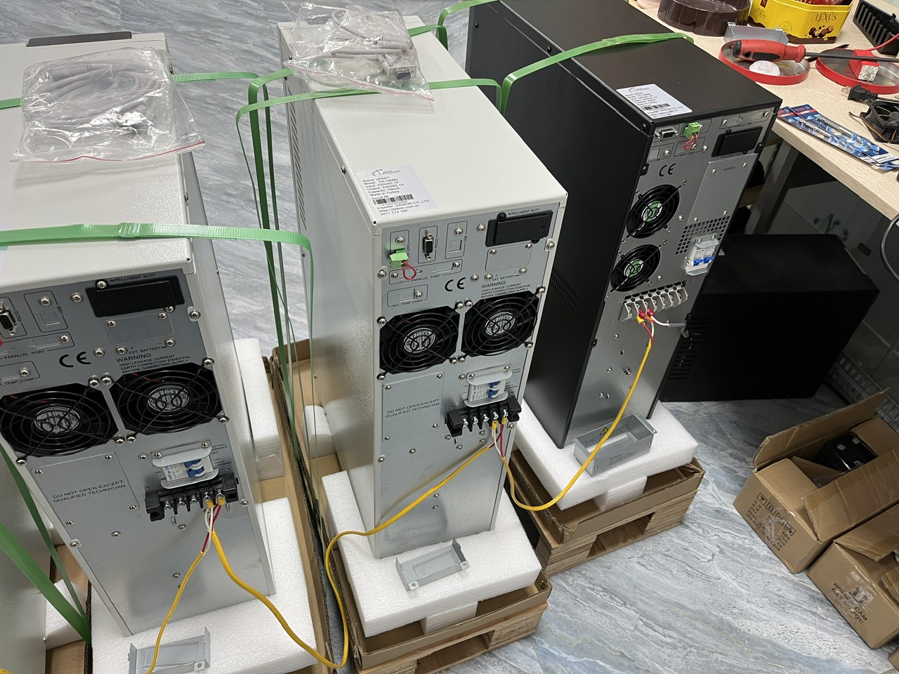 Trước khi UPS 6kVA được xuất kho, đội ngũ kỹ thuật tiến hành test nghiêm ngặt theo quy trình chuẩn, đảm bảo thiết bị hoạt động ổn định – đúng công suất – sẵn sàng vận hành ngay khi lắp đặt.